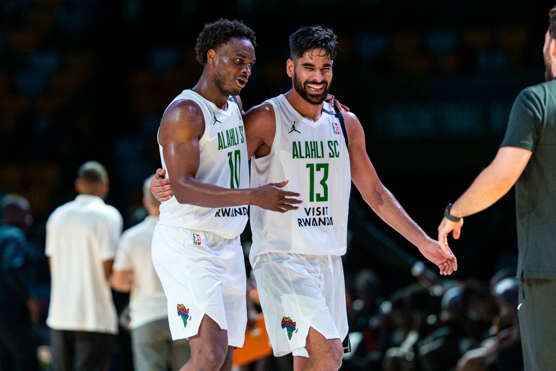 - Al Ahli’s Caleb Agada #10 and Mohamed Abdourahman #13 celebrate the fourth win (Photo by Julien Bacot, BAL/Getty Images)